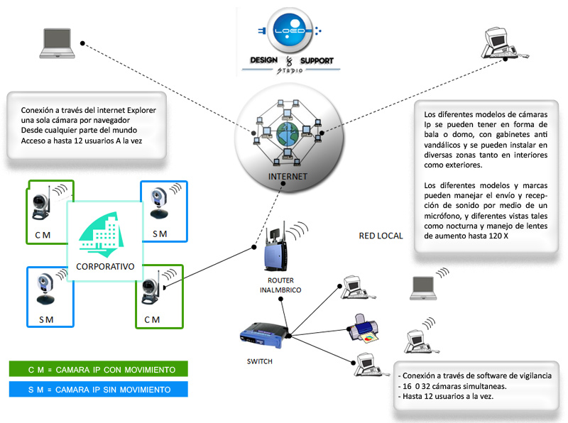navegador estándar o software de administración de vigilancia desde cualquier PC en la red.LOED le da la posibilidad de crear y mantener sistema de vigilancia IP efectivo y seguro. Utilizando las sofisticadas cámaras de red del mercado en sus diferentes marcas y modalidades, los usuarios pueden tener un sistema de vigilancia IP completamente escalable, de cable o inalámbrico de alto rendimiento para monitorizar y proteger sus valiosas propiedades de manera efectiva.